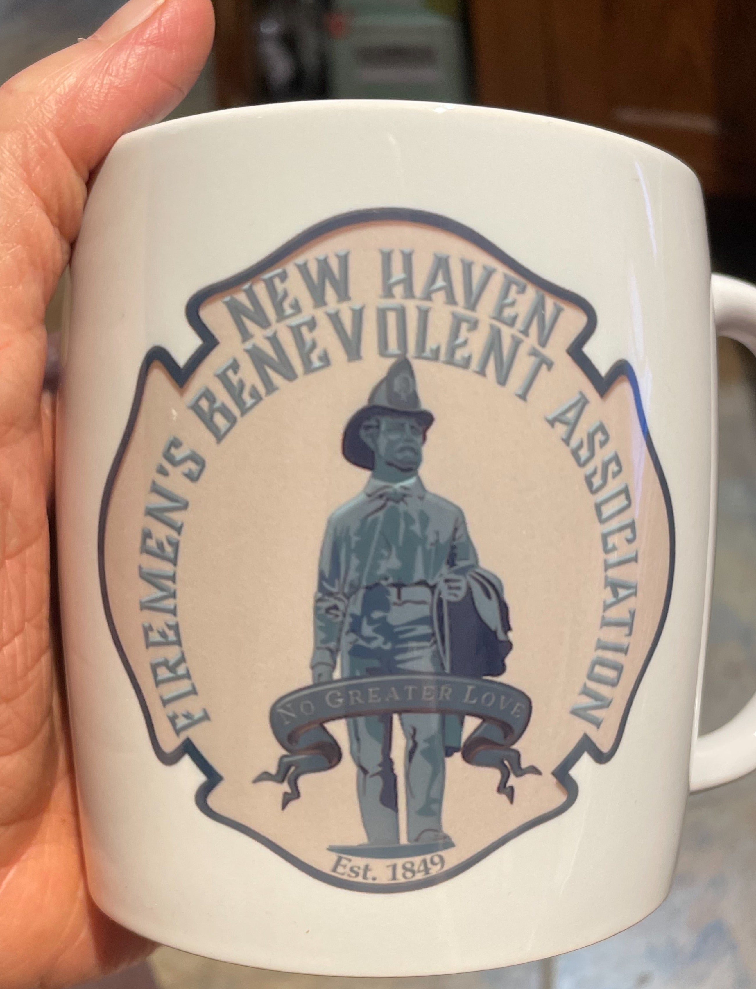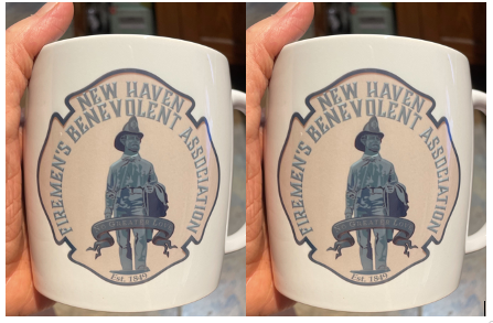 DESIGN ON TWO SIDES. DISHWASHER SAFE..PORTION OF SALES WILL BE DONATED TO FIREMEN'S BENEVOLENT ASSOCIATION..