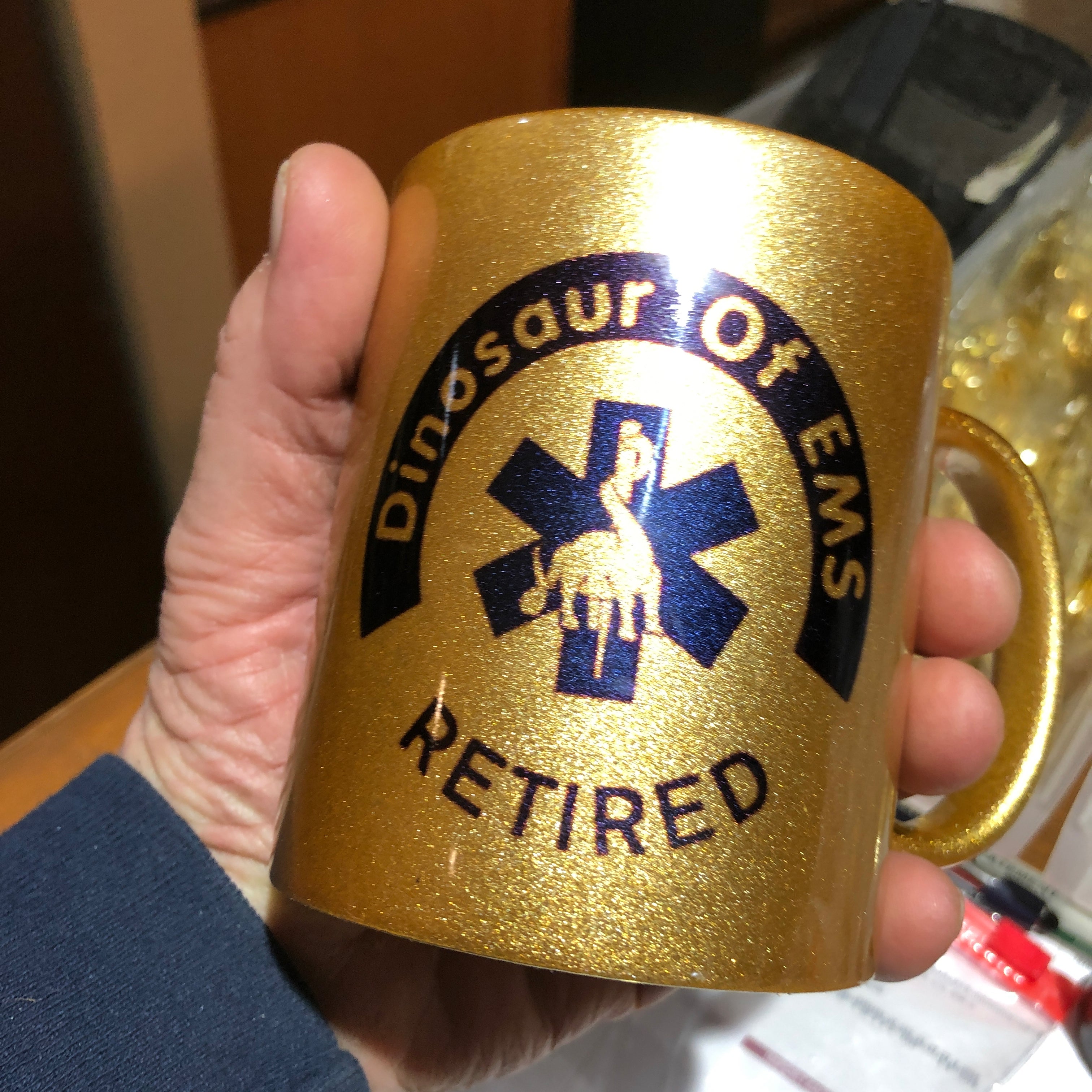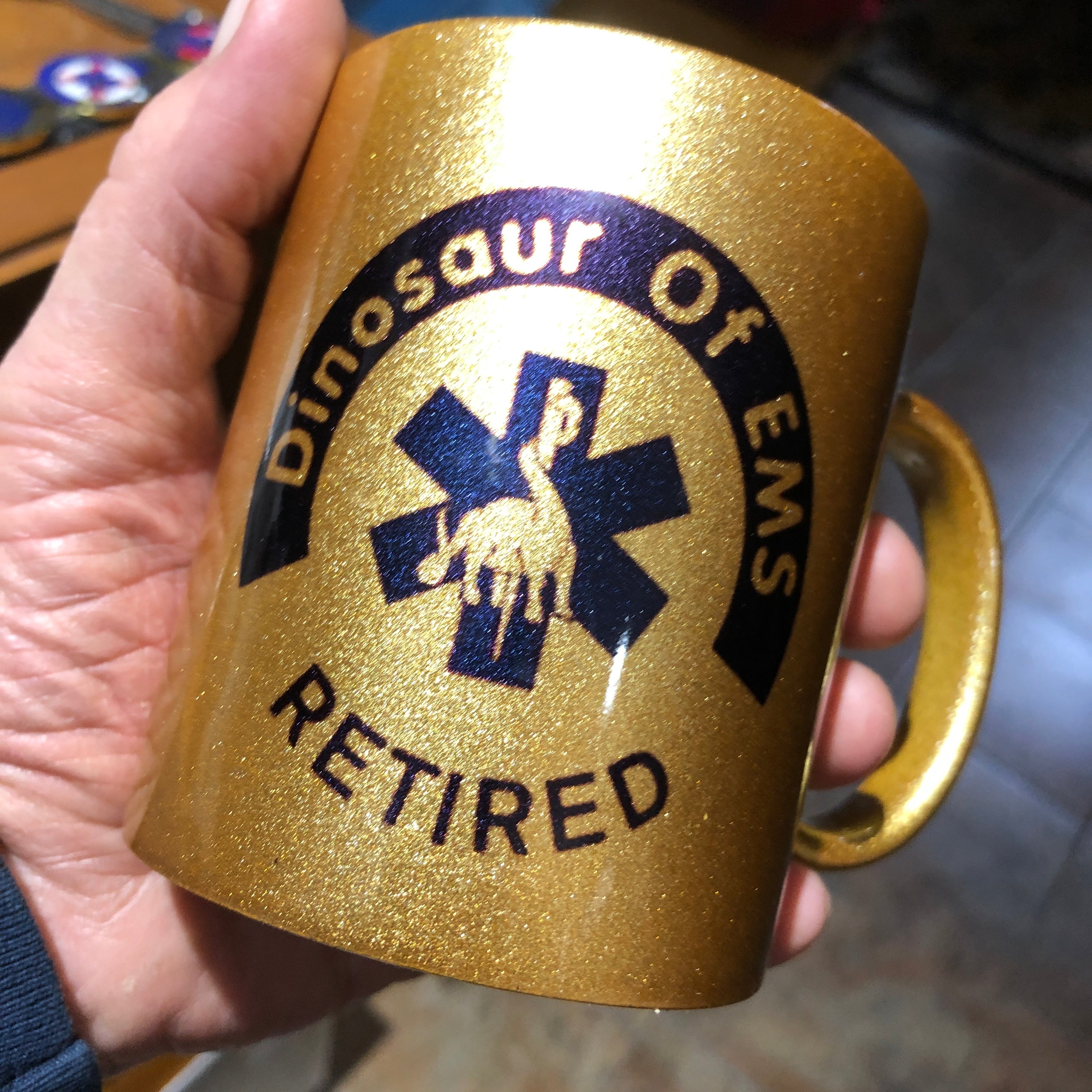 Since I can’t have a cup of joe with all of you…maybe you can have a representative cup with me.  11oz  MUG.  (1) 1.25" lapel pin and (1) 2" decal...